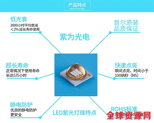 【6】产品均采用国际一流工艺,选用台湾光鋐科技的正品紫光芯片和高精技术,通过繁杂严格的工序精心制作而成。质量通过各项ISO认证,我们专注紫光芯片多年,丰富的经验,更懂客户;多年的沉淀,质量更佳!紫光LED灯珠找紫为,已成行业共识,欢迎来电咨询:139★223★551★81请广大采购商放心购买。